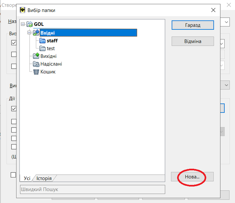 - Введіть бажану назву для папки (наприклад, “Листи від Maersk”).
